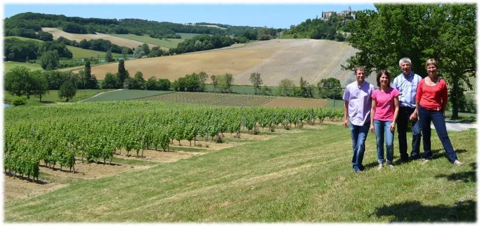 Il profite de coteaux ensoleillés face au village médiéval de Flaugnac pour planter, dans le plus grand secret, les premiers pieds de vigne haut de gamme du Domaine, le Chasselas de Moissac, au milieu d’un champ de blé. Depuis ce jour, la vigne, pour le raisin de table ou de cuve, n’a jamais quitté le Domaine…