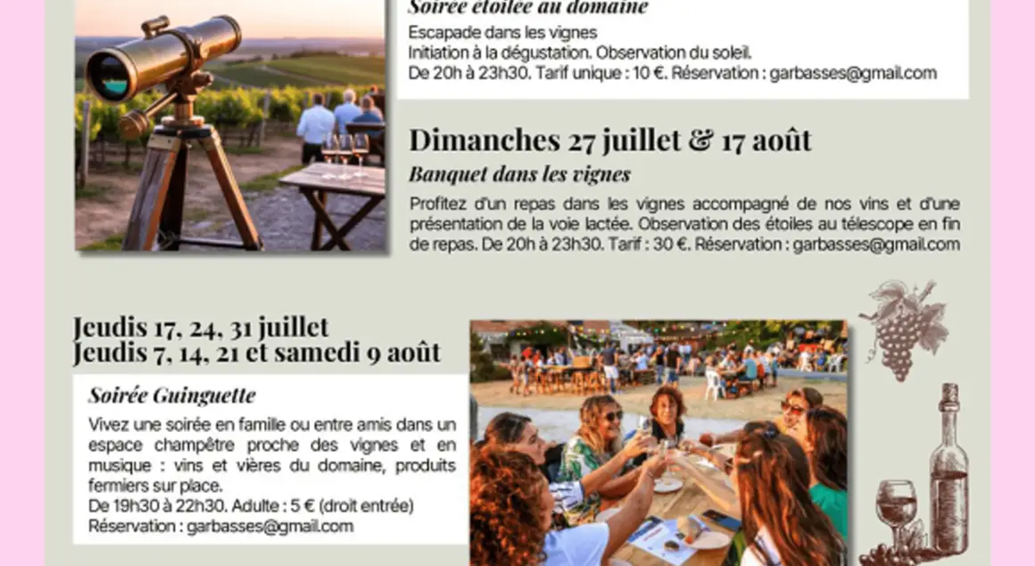 Autres animations proposées : Guinguette à 20 des Garbasses Birado Vigno'Brunch Apéro'Vigneron