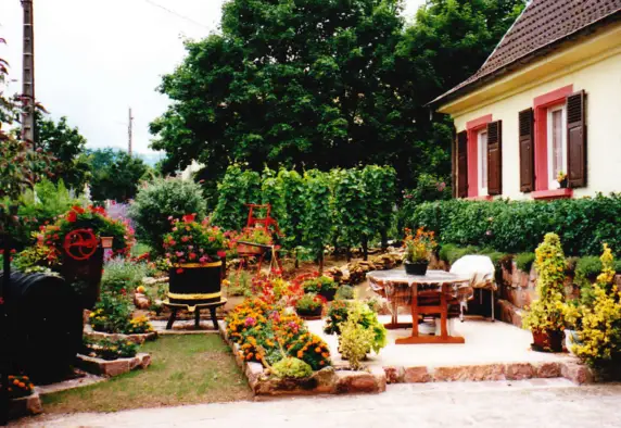 Vivre l'expérience vigneron indépendant : Visite du jardin d'agrément avec quelques cépages alsaciens puis présentation des anciens et nouveaux outils de viti-vinicultures.